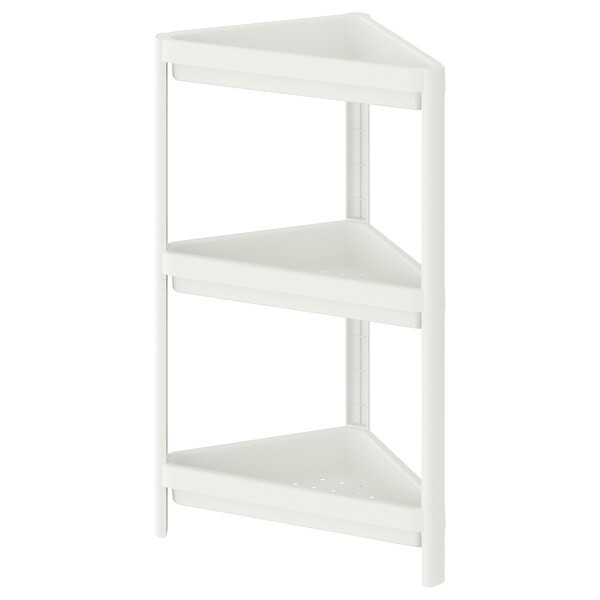 استند سه گوش .سه طبقه برند ایکیا در کوچکترین حمام ها جا می شود، اما در قفسه ها. فضای زیادی برای همه لوازم آرایشی شما از بطری شامپو گرفته تا صابون و اقلام کوچک وجود دارد.
