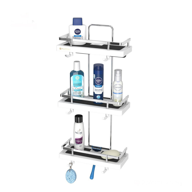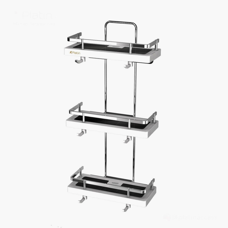 استند حمام 3 طبقه آرسین مناسب حمام و سرویس بهداشتی شما میباشد – در کف طبقات محل خروج آب تعبیه شده است و همچنین قلاب جهت آویز کردن لیف و … دارد . جنس محصول ترکیب فلز و لاستیک آبکاری شده میباشد .