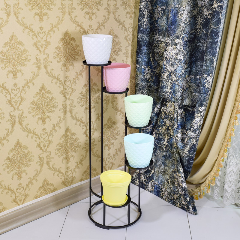 استند گلدان مدل پیچک با متریال پروفیل های صنعتی و سبک و در عین حال مقاوم ساخته شده و به منظور تضمین مقاومت اتصالات از جوش CO2 استفاده گردیده تا نگرانی بابت استحکام جاگلدانی تان نداشته باشید و بتواند وزن گلدان های مختلف را تحمل کند. طراحی پایه گلدان مدل پیچک با الهام از فرم پیچش حلزون انجام گرفته و استفاده از آن در دکوراسیون جلوه فوق العاده شیک و جذابی را به محیط می دهد. رنگ آمیزی استند گلدان مدل پیچک به صورت کوره ای الکترواستاتیک با بهترین پودرهای موجود انجام گرفته است که کیفیت قابل اتکایی داشته و مقاومت بالایی در برابر زنگ زدگی ایجاد کرده است. استند پایه گلدان مدل پیچک برای قرار دادن 5 گلدان مناسب است و همچنین می توان در وسط حلقه مرکزی نیز یک گلدان قرار داد.