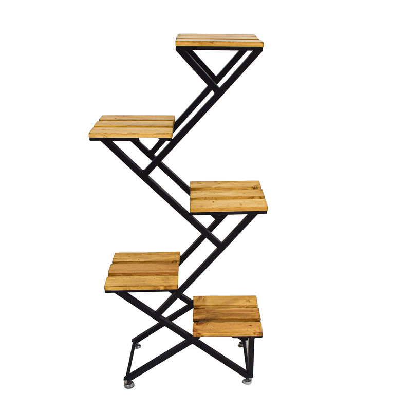 طراحی این استند بسیارزیبا و کم جا می باشد .جنس پایه ها از پروفیل فابریک بدون درز با جوش CO2,ودارای رنگ کوره ای می باشد.جنس طبقات از چوب طبیعی با پوشش پولیستر مات است. ته پایه ها ریگلاژی و قابل تنظیم است. این استند تحمل وزن تا 80 کیلو گرم را دارد.