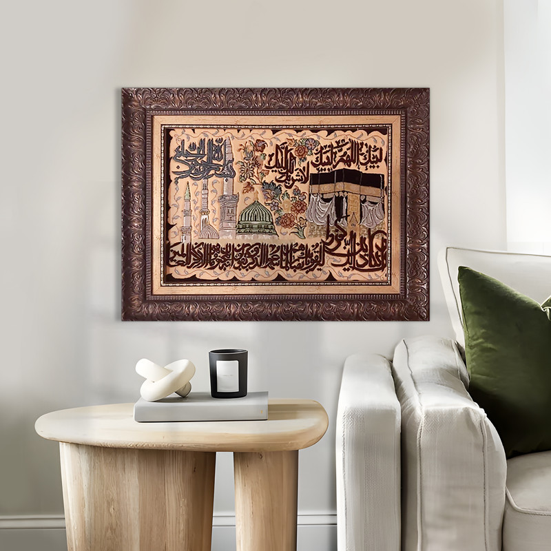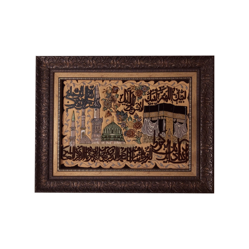 تابلوفرش دستبافت مدل نقش برجسته طرح مکه و مدینه کد NKP.T 1/43