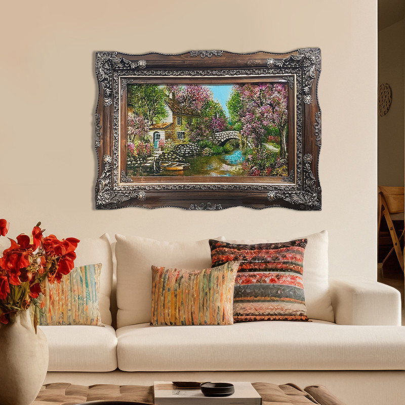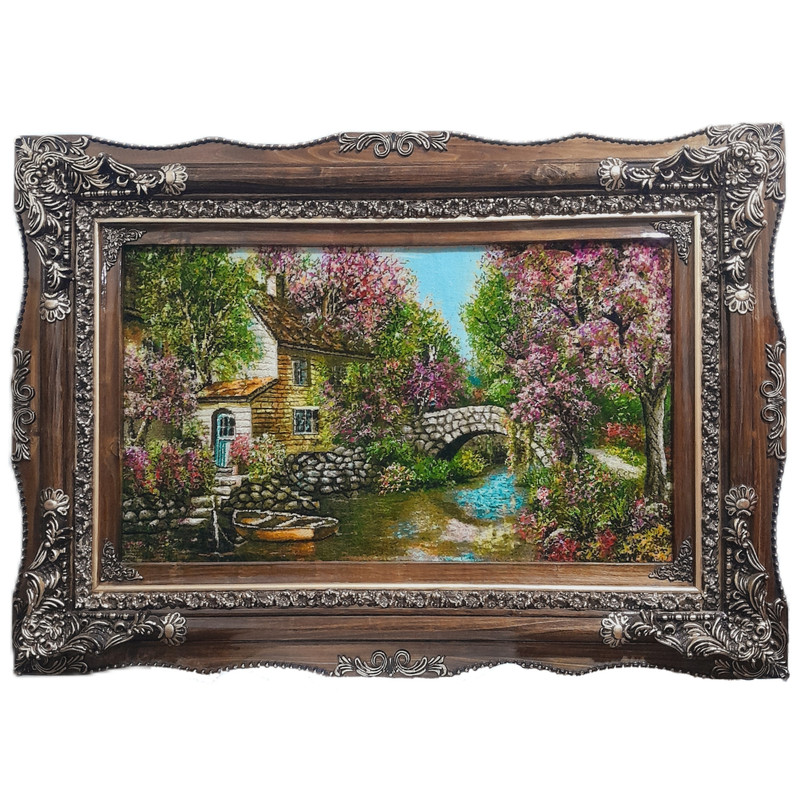 در زندگی مدرن، تابلوفرش جایگاه ویژهای در دکوراسیون منزل دارد و خانه شما را شیکتر میکند. این تابلوفرش با منظره رودخانه و پل که بر روی آن قرار گرفتهاست و با گل ابریشمهایی که داخل بافت آن بکار رفتهاست جلوه خانه شمارا چندین برابر زیباتر میکند.