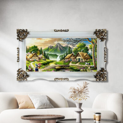 تابلو فرش ماشینی طرح دستبافت مدل روستا کد 8440