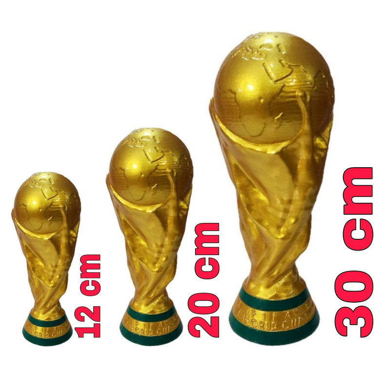 تندیس کاپ جام جهانی بصورت یک پک کامل و در سه سایز مختلف ارائه شده است.. جنس محصولات بسیار با کیفیت و از جنس گچ بوده و طراحی آنها به گونه ای است که بیشترین شباهت را به نمونه اصلی کاپ جام جهانی دارند. سایز بزرگ و اصلی آن دارای ارتفاع 30 سانتیمتر بوده و سایز متوسط آن ارتفاع 20 سانتیمتر و سایز کوچک آن دارای ارتفاع 12 سانتیمتر می باشد..