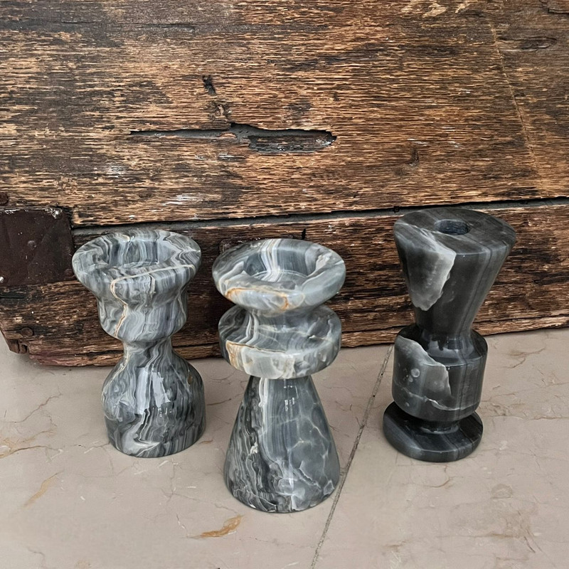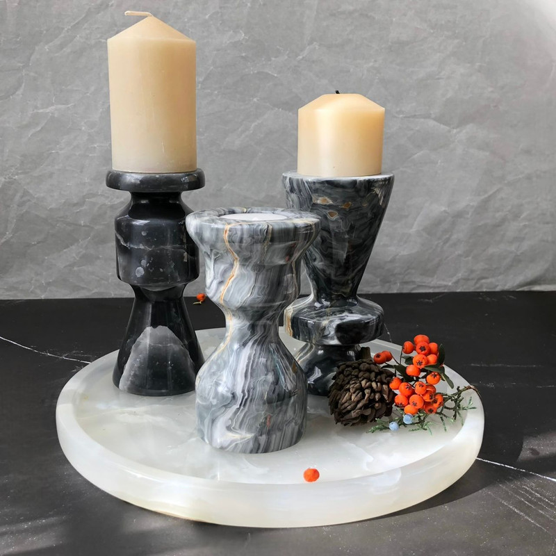 ست جا شمعی 3 عددی سنگ مرمر – ترکیبی از زیبایی طبیعی و کارایی