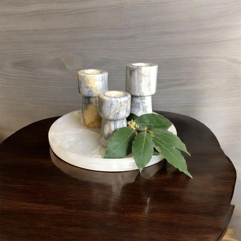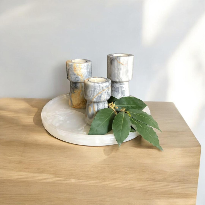 ست جا شمعی 3 عددی سنگ مرمر – ترکیبی از زیبایی طبیعی و کارایی