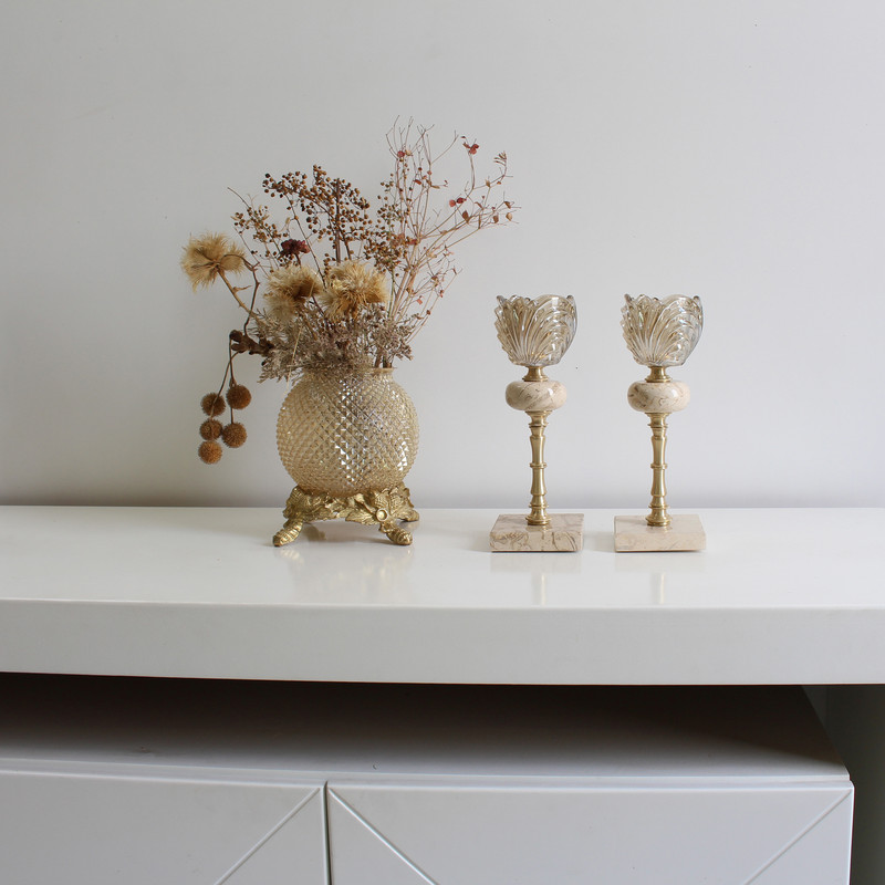 شمعدان مدل فلورا ، جنس این محصول سنگ ، برنج و کریستال بسیار مرغوب و باکیفیت می باشد. این شمعدان مناسب برای کنسول ، عسلی ، دکوری و غیره است . در داخل لاله این محصول جاشمعی مناسب برای قراردادن شمع هست