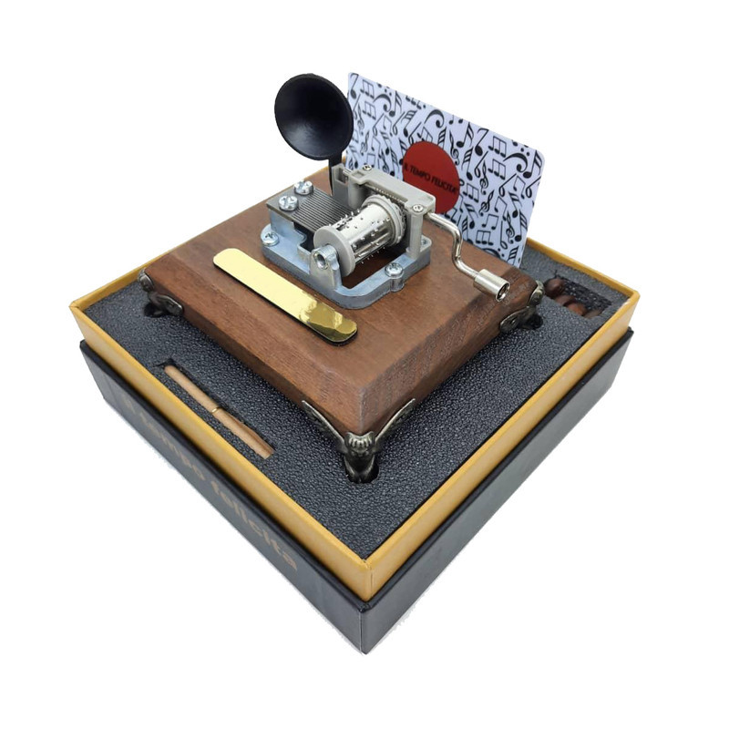 جعبه موزیکال ، مدل لاو استوری پایه موزیک باکس‌های هندلی برند ایل تمپو فلیچیتا می‌باشد. در این محصول از چوب راش برای ساخت پایه استفاده شده است تا طنین دلنشین صدای موسیقی واضح و شفاف به گوش مخاطب برسد. هندل کوک در این مدل کنار محصول قرار دارد و سیلندر، قسمت‌های فلزی و کوک به رنگ نقره ای آبکاری شده است. هدیه‌ای زیبا و ماندگار برای کسانی که دوستشان دارید. توجه داشته باشید جهت شنیدن حداکثر صدای موزیک باکس بهتر است آن را روی میز چوبی یا شیشه‌ای قرار دهید.