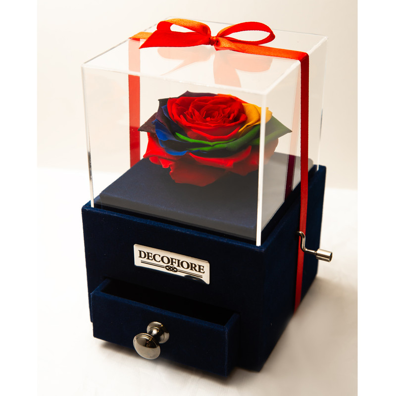 – این محصول جعبه هدیه موزیکال هندلی رزجاودان رنگارنگ دکوفیوره می باشد. کشو ای که در محصول تعبیه شده امکان قرار دادن هدیه، شکلات، کارت پول و … را فراهم می آورد.