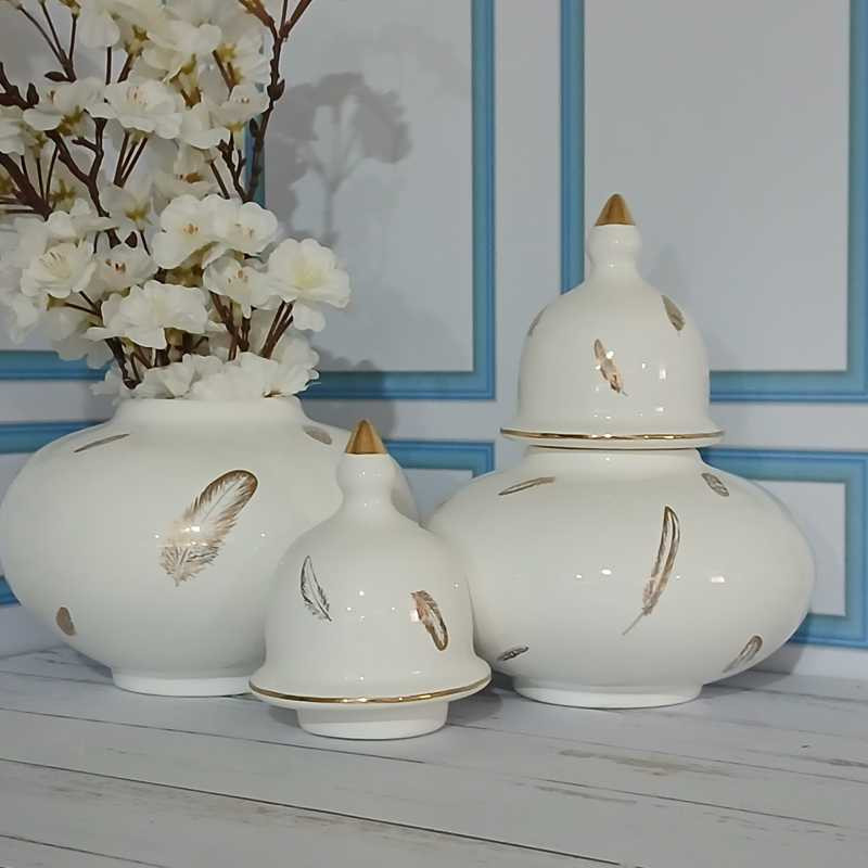 دکوری مدل جینجر جار طرح پر کد 002 مجموعه دو عددی