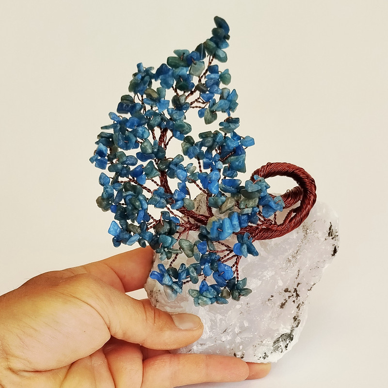 درختچه سنگی آپاتیت کد ۲۱۶. این درختچه با سنگ های طبیعی و نامنظم آپاتیت درجه یک و سیم مسی بر روی بستری از سنگ راف مرمر صورتی کمرنگ سوار شده است و یک نمونه تک نسخه و بدون تکرار می باشد . ابعاد این کار ۱۴×۷ سانتی متر با ارتفاع ۱۸ سانتی متر و وزن ۶۰۰ گرم می باشد.