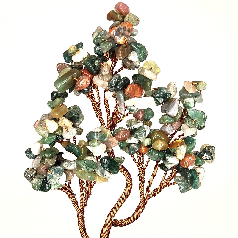 درختچه سنگی عقیق سبز خزه ای ساخته شده از سنگ های طبیعی و نامنظم عقیق و سیم مسی .