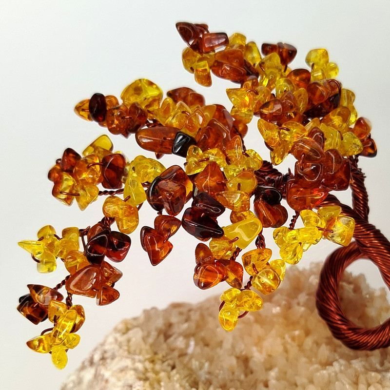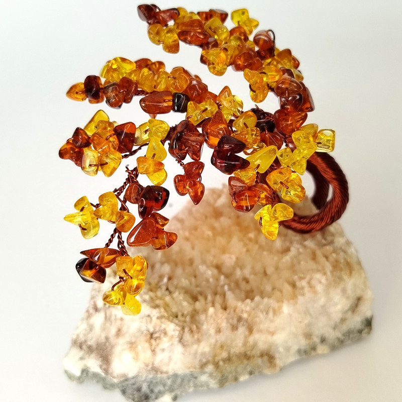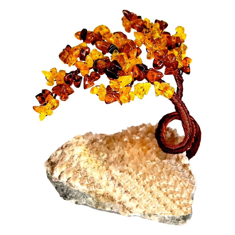 درختچه سنگی کهربا کد ۲۱۶ این درختچه از سنگ های جواهری طبیعی و نامنظم کهربا روشن و تیره درجه یک ساخته شده است و بر روی بستری از سنگ طبیعی کلسیت سوار شده است . این کار یک نمونه بسیار خاص، تک نسخه و بدون تکرار می باشد .