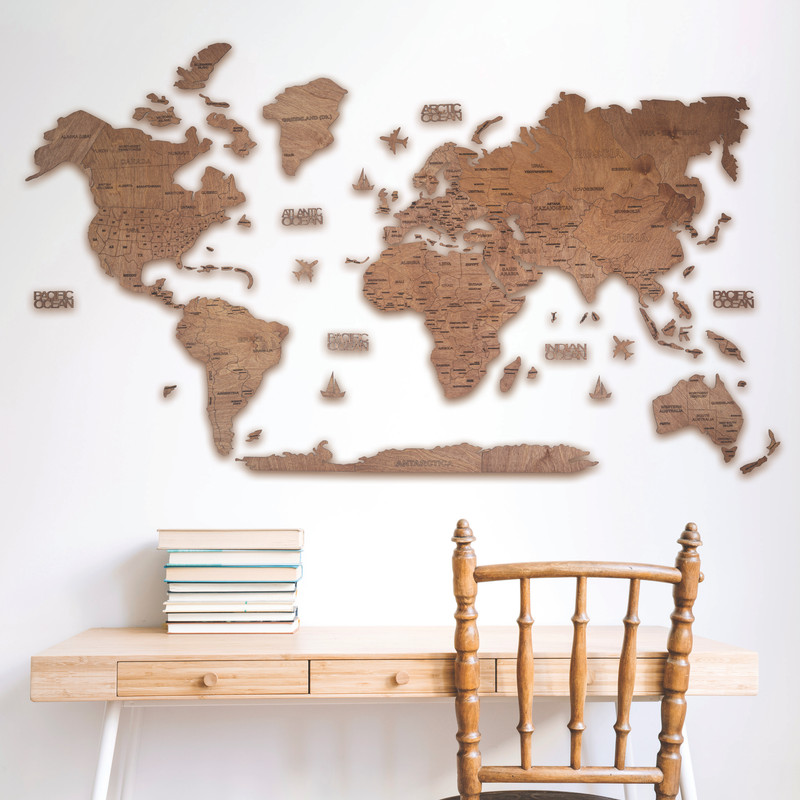دیوارکوب طرح نقشه چوبی جهان مدل سه بعدی