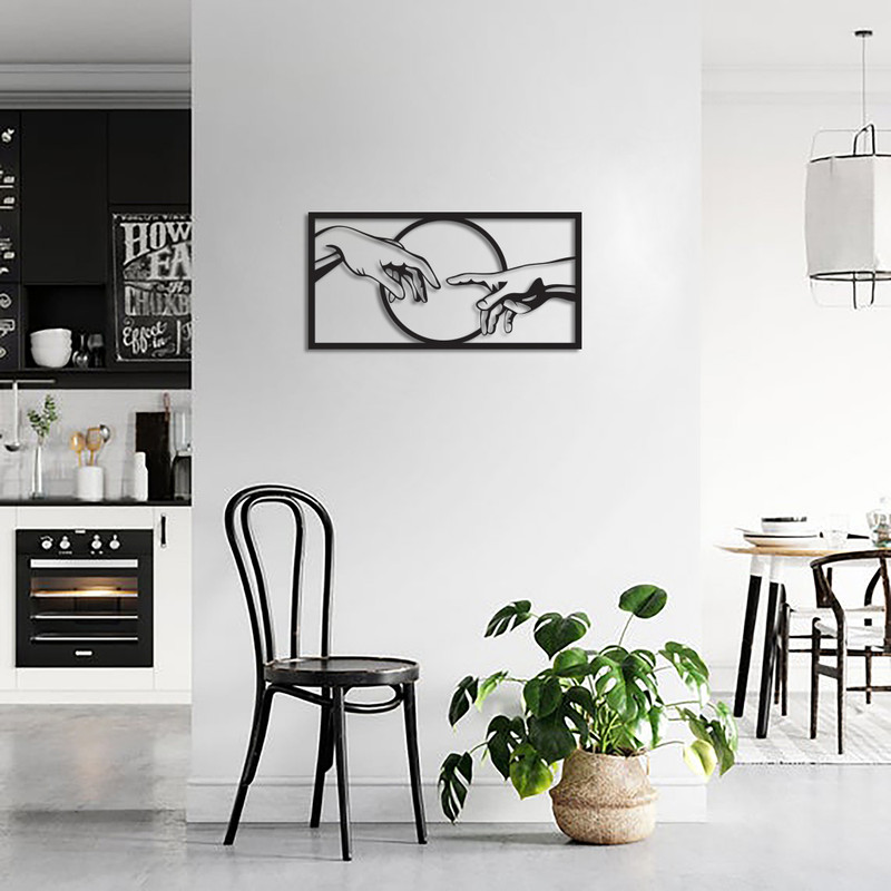 دیوارکوب فلزی (آفرینش) بر گرفته از اثر هنرمند معروف ایتالیایی (میکل آنژ) بر روی سقف کلیسای سیستین میباشد.