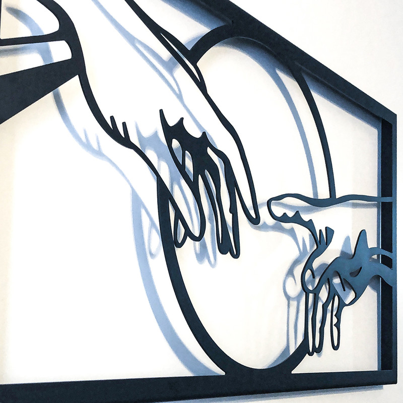 این اثر ساخته شده از ورق 2میل آهن با رنگ مشکی سوپر مات بوده و عمق 15 میل بر روی دیوار سایه ای زیبا از خطوط اثر به جا میگذارد.