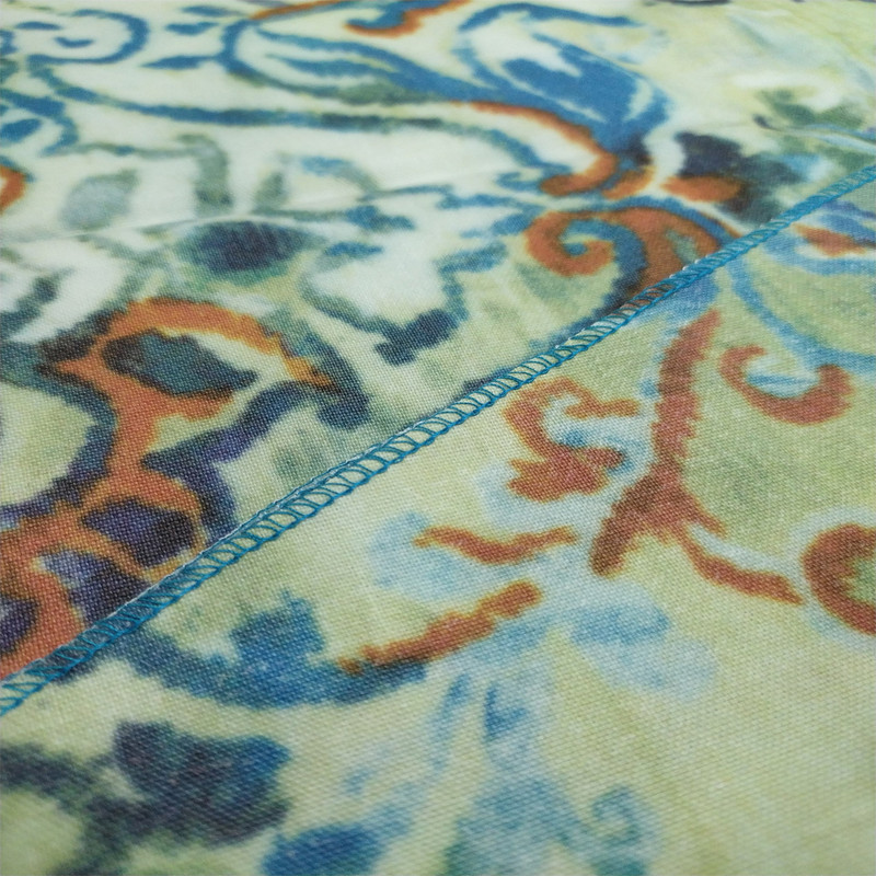 این رومیزی با نخ همرنگ پارچه سردوزی شده که به زیبایی و دوام پارچه می افزاید.
