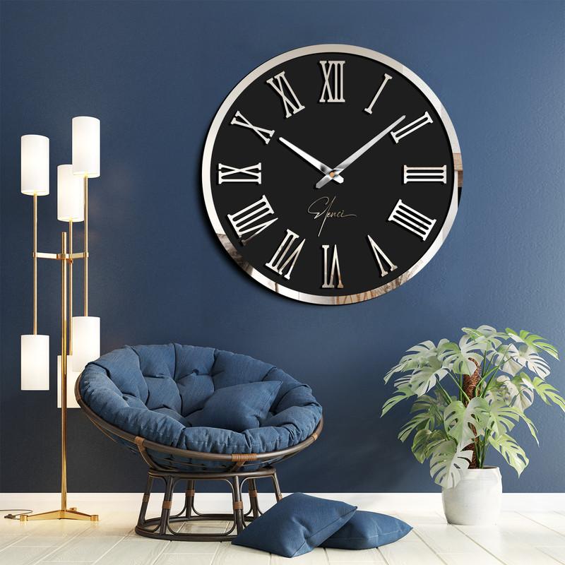 کارولین از سری ساعتهای زمینه مات برند النسی است که طراحی آن نمره ی بالایی از مشتریان این برند گرفته است. النسی پس از طراحی و محبوبیت این مدل، آن را درچندین سایز و رنگ عرضه کرده، که محصول پیش رو قطر بزرگ 80 سانتی این طرح است. این ابعاد برای نصب در اتاق خواب ، فضای کار محدود و یا قرار دادن روی شلف و کنسول بعنوان مکمل اکسسوری ها مناسب است. کارولین از بدنه چوبی با رنگ آمیزی مشکی مات ساخته شده که پنل اعداد از جنس آینه های مولتی استایل روی آن قرار گرفته است. وجود اسپیسر های فومی زیر پنل اعداد و فریم ساعت، سایه زیبایی از اعداد روی صفحه ایجاد می کند که به زیبایی این محصول افزوده است. این ساعت دیواری قابلیت نصب روی کلیه سطوح صاف را داشته و موتور آن ساخت کمپانی معتبر یانگ تاون تایوان است. کارولین توسط برند النسی که در حوزه طراحی اکسسوری دکوراتیو تخصص دارد، طراحی و تولید شده است.