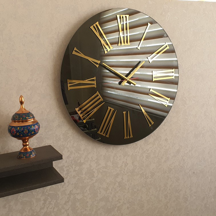 ساعت های دیواری آینه ای طراحی جدیدی از تلفیق آینه و ساعت است به گونه ای که بخش زیادی از صفحه را آینه دودی رنگ تشکیل داده و اعداد رومی بر روی آینه قرار گرفته است. این ساعت ها قابل استفاده در تمام فضاهای منازل، فروشگاه ها، سالن ها و.. است و بخصوص در فضاهایی که از نورهای تزئینی مانند نورپردازی در کناف سقف، هالوژنها و لوسترهایی با تعداد شعلههای نوری زیاد استفاده میکنند، انعکاس بیشتری ایجاد میکند و درخشش بسیار زیبایی در زمان روشنایی نورها به چشم میآید. ابعاد این ساعت ها 60×60 بوده و از ویژگیهای این ساعت دیواری، میتوان به استفاده از آینههای شفاف و مرغوب که انعکاس بالایی داشته و موتور این ساعت که از نوع آرام گرد اصل تایوانی است اشاره کرد. لازم به ذکر است این ساعت به راحتی بر روی دیوار قابل نصب بوده و قابل جابجاییست .
