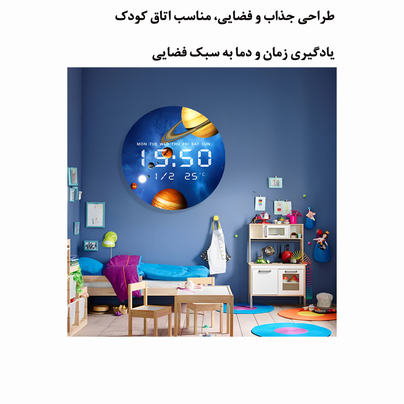 ویژگیهای منحصر به فرد این ساعت، از جمله تقویم، دماسنج و نمایش 24 ساعته، به شما این امکان را میدهد که همیشه از وضعیت زمان و محیط خود آگاه باشید. با منبع تغذیه خارجی و ابعاد 300 میلیمتری، این ساعت به راحتی در هر مکانی نصب میشود و با ضخامت 15 میلیمتری خود، طراحی جمع و جوری دارد. بدنه پلاستیکی با کیفیت و آینه ارگانیک این ساعت، علاوه بر دقت و کارایی، زیبایی خاصی به دکوراسیون محیط شما میبخشد.
