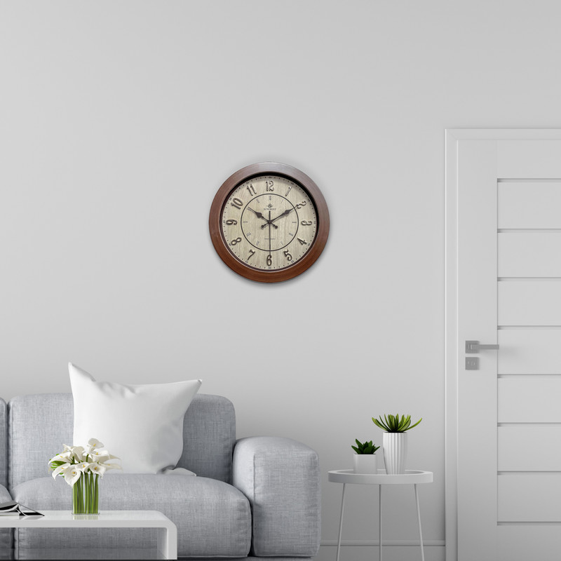 استفاده ازفریم قهوه ای به همراه اعداد آبکاری شده با رنگ طلایی این محصول را نسبت به ساعت های موجود در بازار در این ابعاد متمایزز کرده است .