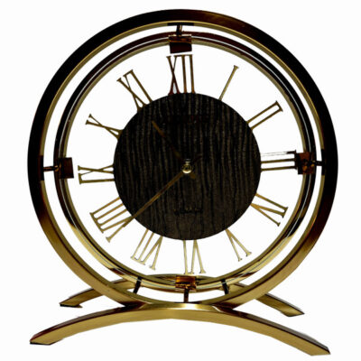 ساعت فوق رومیزی دارای پایه جدا شونده و جنس بدنه به صورت براق تولید شده است. جنس بدنه فلزی است.