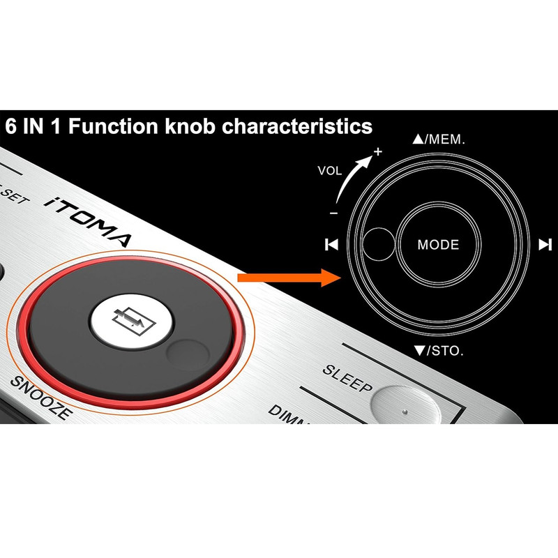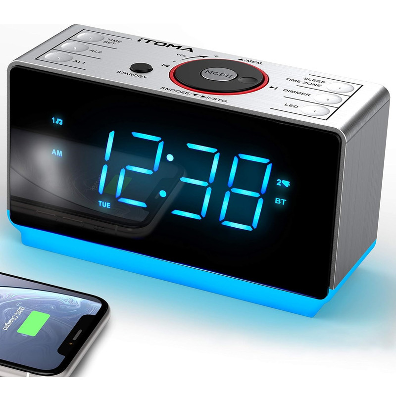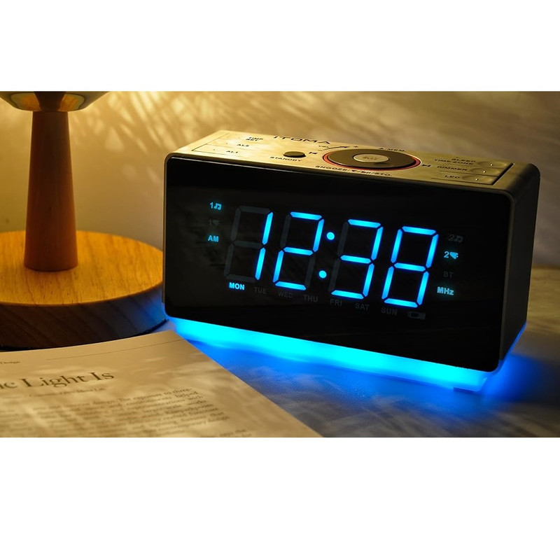 رادیو FM، بلندگوی بلوتوث، روشنایی و صدا قابل تنظیم، پورت شارژ USB (نوع A)، حافظه پشتیبان باتری، نمایشگر LED، ساعت زنگ دار دوگانه با تعویق، نور شب آبی یخی، صفحه نمایش LED 1.4 اینچی،