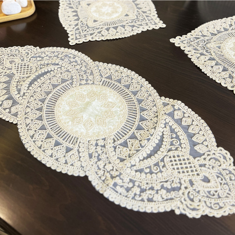 یک عدد رانر: 84×36 (2±) سانتی‌متر دو عدد رومیزی عسلی: 37×36(2±) سانتی‌متر