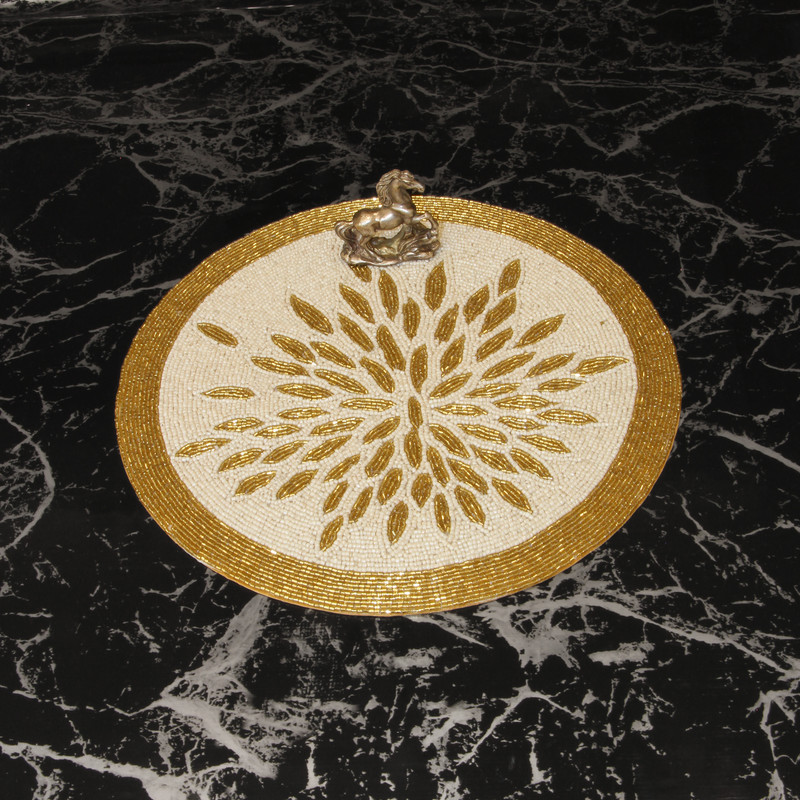 ست رومیزی لوکس تماما جواهردوزی زرموند شامل یک عدد رومیزی جلومبلی و سه عدد رومیزی عسلی می باشد که توسط هنرمندان خوش ذوق کاملا بصورت دستدوز تهیه شده است.