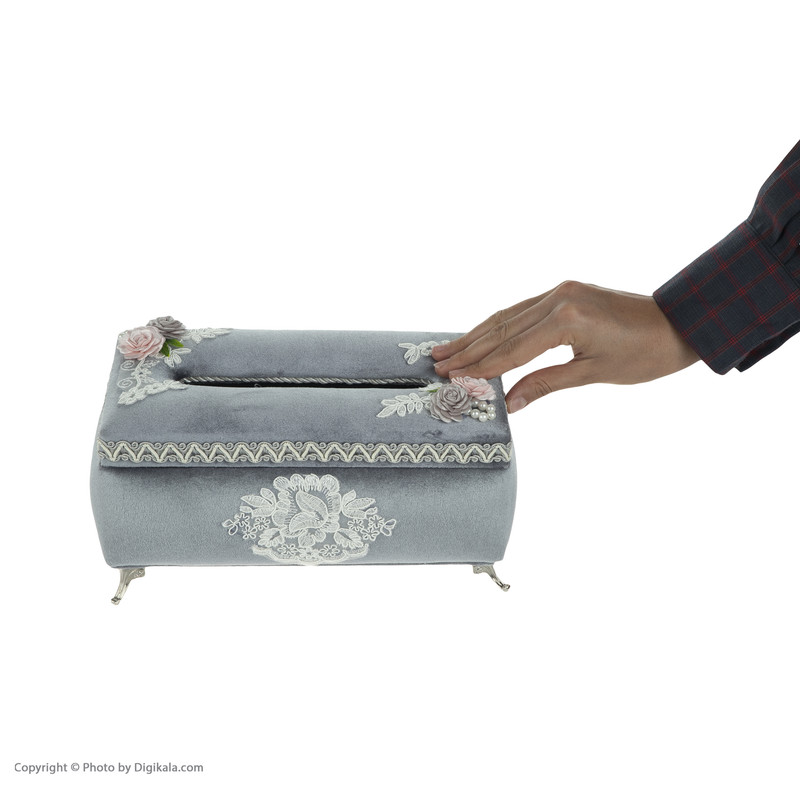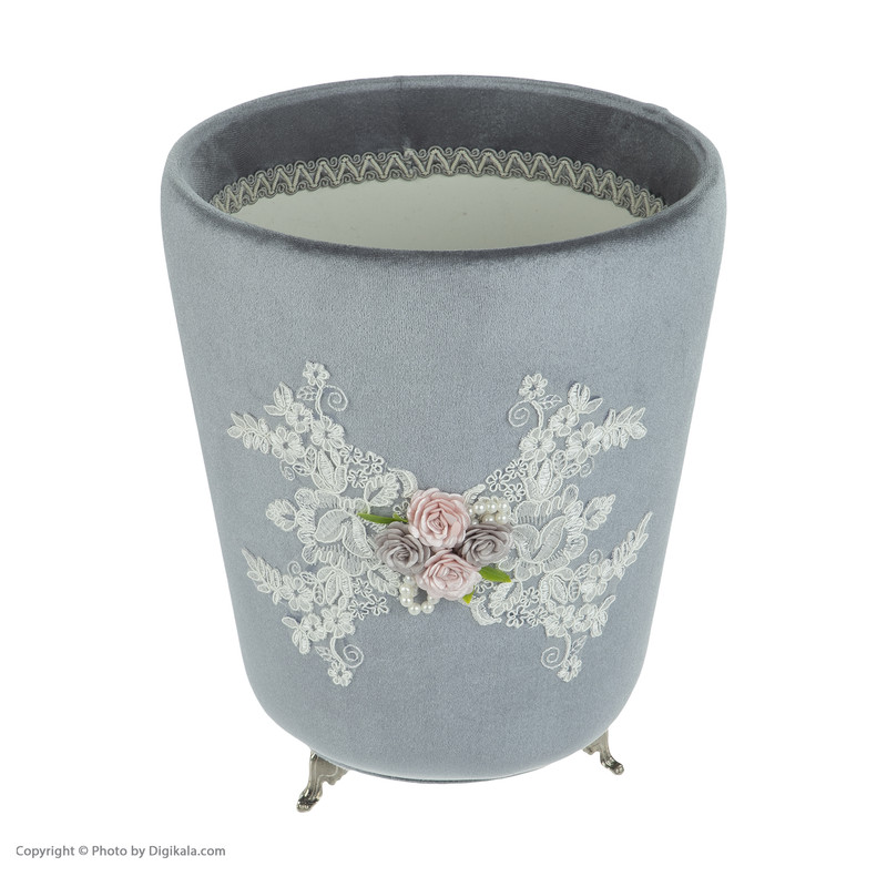 ست سطل و جای دستمال کاغذی در انواع طرح و رنگ ها ساخته و با توجه به نوع دکوراسیون منزل انتخاب میشود. ست سطل و جای دستمال کاغذی کد 101 با طرح مدرن و زیبای خود میتواند گزینه مناسبی برای دکوراسیون منزل باشد. این ست از یک سطل در ابعاد 25×25×39 و یک جای دستمال کاغذی در ابعاد 28×16×13 سانتیمتر ساخته شده که توانسته فضای کمتری را در گوشه ای از پذیرایی شما اشغال کند. این محصول از جنس مخمل ظریف و نرم تولید شده که جلوه و زیبایی منحصر به فردی را از خود نشان میدهد. سطل این محصول بدون درپوش است. همانطور که در عکس فوق میبینید طرح گل روی هر دو محصول بوده که به زیبایی بیشتر آن افزوده است. از اقلام همراه این محصول میتوان به یک جعبه جای کارد و چنگال نیز اشاره کرد که باعث ترکیب چشم گیری در این محصول شده است. این ست دارای پایه های طلایی رنگ بوده که زیبایی چشم گیری را از خود جلوه میدهد.