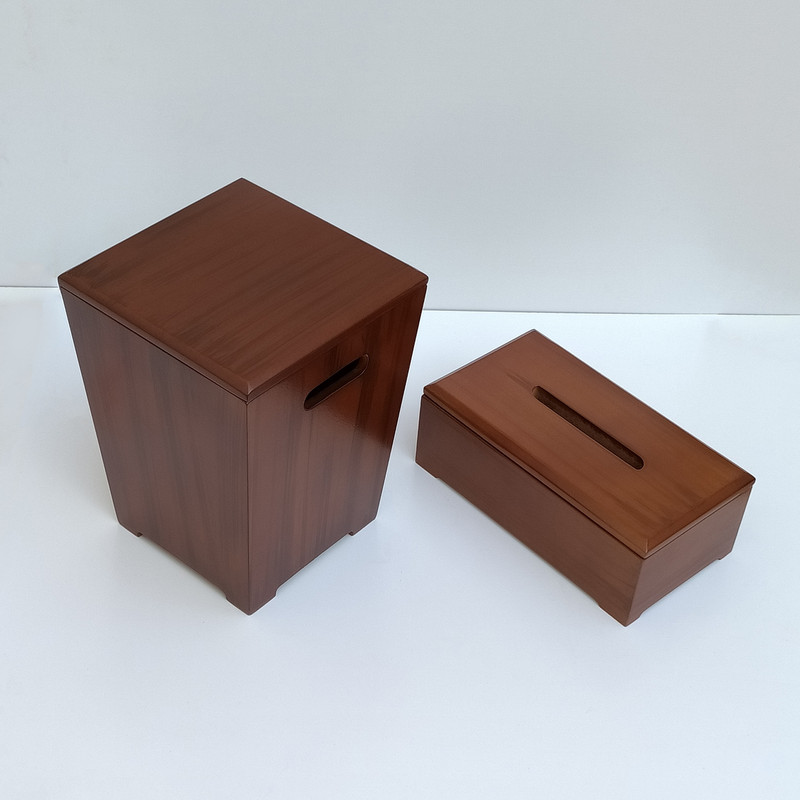 ست سطل و جعبه دستمال کاغذی مدل چوبی