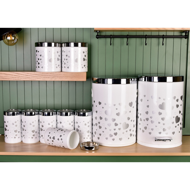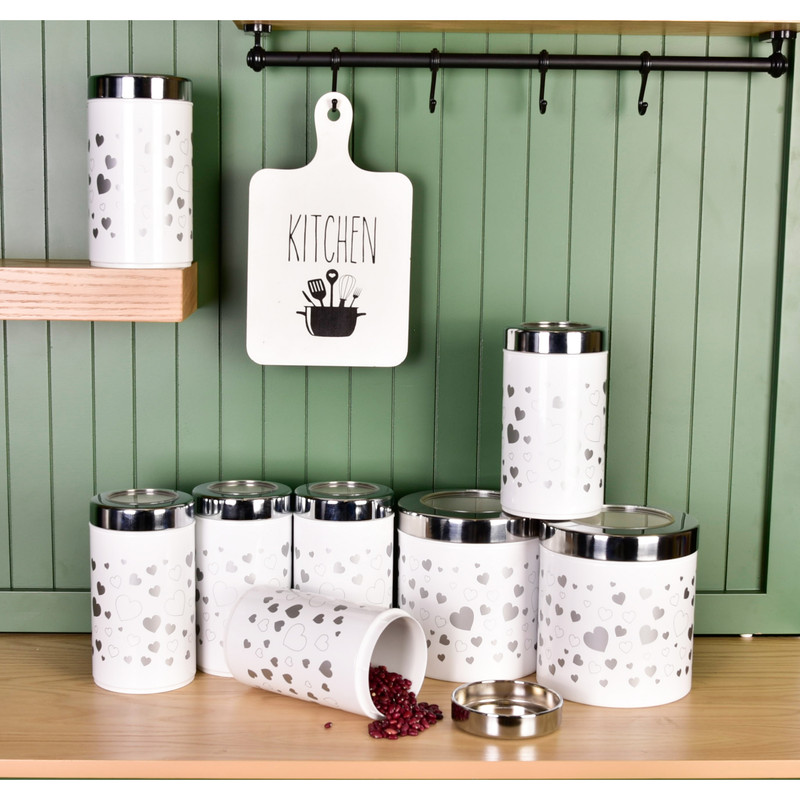این ست شامل : 1 عدد سطل زباله ، 1 عدد سطل برنج ، 1 عدد سطل قند ، 1 عدد سطل شکر، 6 عدد جا حبوبات
