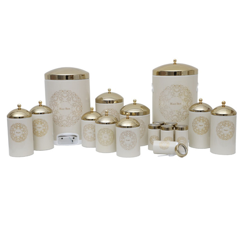 سطل پدالی متوسط با درب آرام بند سطل برنج متوسط سطل قند سطل شکر جاحبوباتی (4 عدد ) پاسماوری کمرباریک(3 عدد) |