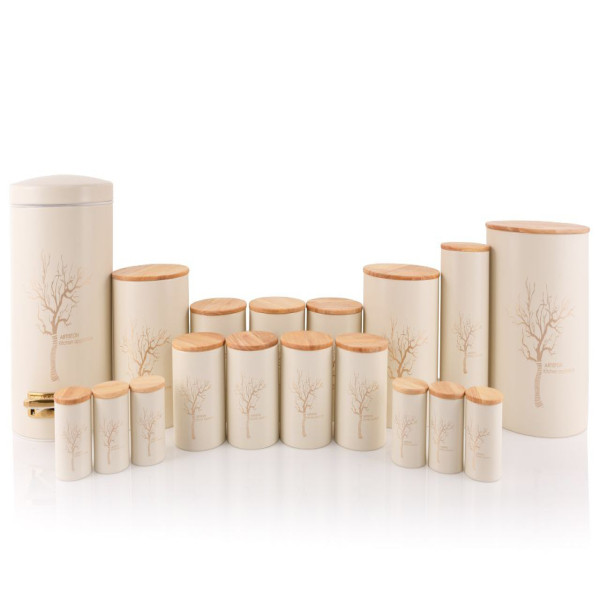 این سرویس ۱۸ پارچه بدنه رنگی درب بامبو با ظاهری بسیار زیبا و به روز شامل اقلامی نظیر 1 عدد سطل برنج ( 15 لیتری ) ، 1 عدد سطل زباله ( 12 لیتری ) ، 1 عدد سطل قند ( 7 لیتری ) ، 1 عدد سطل شکر ( 7 لیتری ) ، 3 عدد بانکه ( 2 لیتری ) ، 4 عدد بانکه ( 1.5 لیتری ) ، 6 عدد ادویه پاسماوری میباشد که نیاز های شما رو به طور کامل در خانه هایی به فضای کم و آشپزخانه کوچک کاملا برطرف کرده و زیبایی که آشپزخانه رو دو چندان میکند.