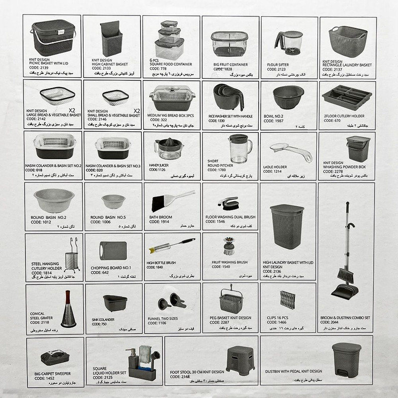 سطل زباله این سرویس با پدال تاشو و طرح بافت منحصر به فرد، جزء قطعات زیبای این ست محسوب میشود. یکی از افتخارات جدید این سرویس، الک ماشه دار لیمون است که با طراحی خاص و رنگ بندی جذاب، به عنوان یکی از اقلام ضروری هر آشپزخانه ایرانی محسوب میشود. همچنین، ست جامایع اسکاچ دار جدید لیمون نیز به این سرویس افزوده شده است.
