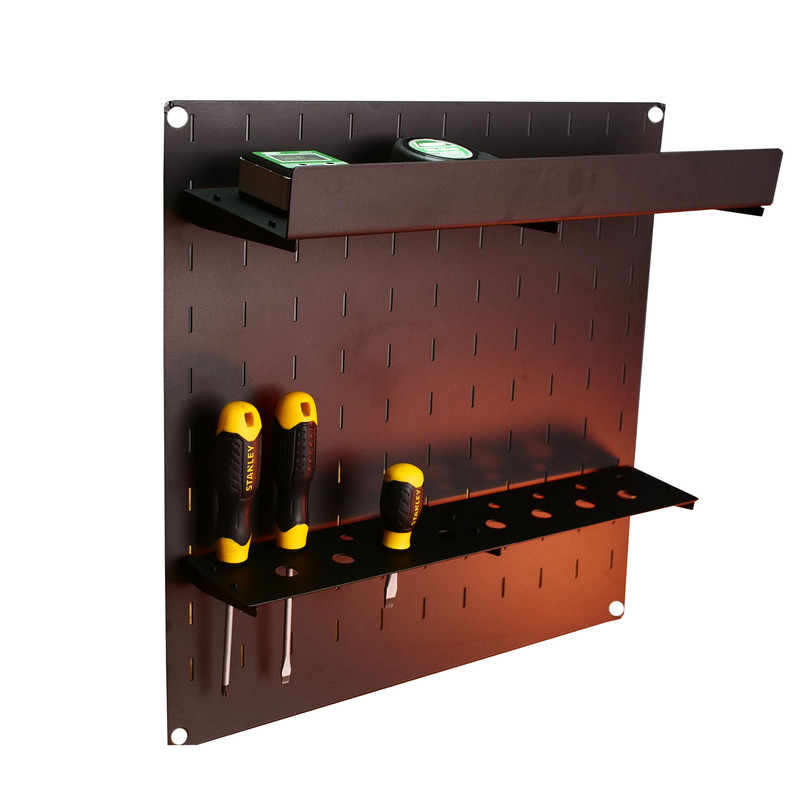 از گذشته های دور تا به امروز دکور ها و لوازم دکوراتیو، یکی از جذاب ترین انتخاب ها در دکوراسیون منازل و حتی شرکت ها به حساب می آیند. این روزها اغلب طراحان معماری ترجیح می دهند با استفاده از حداقل یک تا چندین نمونه از شلف و باکس یا نمونه هایی از این دست، به فضای کوچک و تنگ در آپارتمان های امروزی روح و نشاط ببخشند. شلف دیواری یا پگ بورد ها در واقع صفحاتی هستند که روی آن ها تعداد زیادی سوراخ وجود دارد. این سوراخ ها به شما این امکان را می دهند که لوازم مختلف خود را با نظم خاصی روی آن ها آویزان کنید. علاوه بر این می توانید روی این بورد ها، شلف هایی را نیز نصب کنید. پگ بورد ها بر اساس محل نصب، کاربرد های مختلفی دارند. در هر محیطی این بورد ها به وسایل شما نظم خواهند بخشید. علاوه بر این، جلوه زیبا و مدرنی نیز به دکوراسیون منزل شما خواهند بخشید. پگ بورد ها محدودیتی ندارند و هرطور که بخواهید میتوانید آنها را شخصی سازی کنید سایر شلف یا پگ برد 44×44 جنس اهن با رنگ کوره ای مشکی مات دارای سوراخ به تعداد118 لچک اویر 20 عدد سینی جای پیچ کوشتی به ابعاد8×41/5سانتی متر که دارای 16عدد سوراخ دارد و سینی L به ابعاد 12×41/5میباشد 4 عدد اسپیسر و پیچ و رول پلاک دیوار .