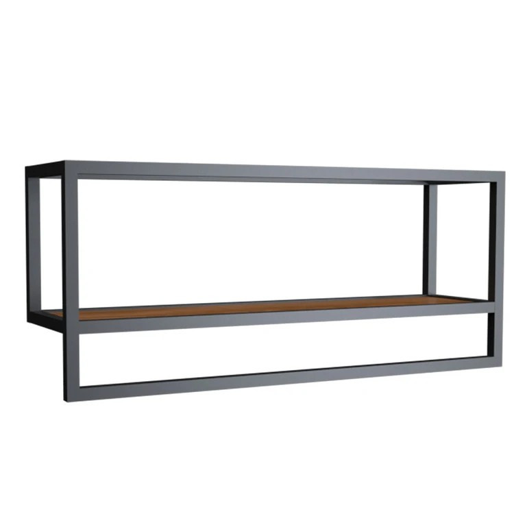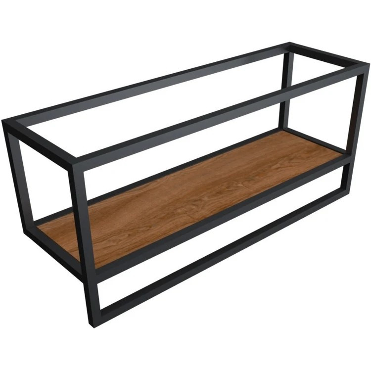 شلف دیواری مدل 5604 جنس بدنه از فلز مستحکم با رنگ کوره ای مشکی ثابت با کیفیت و طبقات از ملامینه درجه یک میباشد