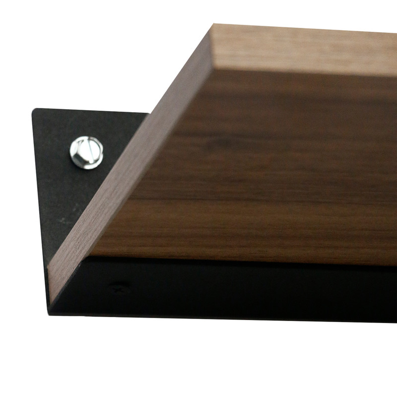 پایه آهنی این شلف با ضخامت 2 میلیمتر استحکام لازم را به آن می دهد. رنگ کوره ای مشکی این محصول مقاومت بالایی در برابر خط و خش و پریدگی رنگ ایجاد می نماید. طبقه ام دی اف با طرح چوب با کیفیت بالایی برش خورده است. در فرآیند برشکاری و نوار کاری این طبقه از بهترین دستگاه های آلمانی بهره گرفته شده است. بنابراین از لب پری و بیرون زدگی های چسپ از دور نوار که در محصولات ایرانی معمول است خبری نخواهد بود.