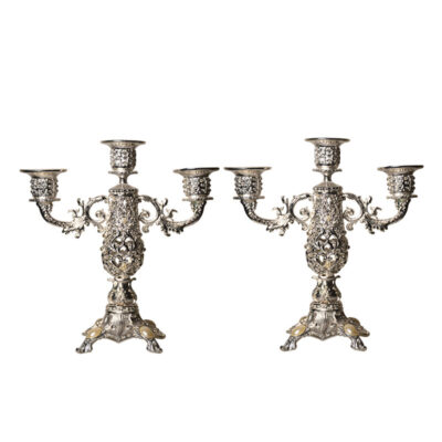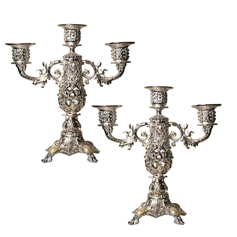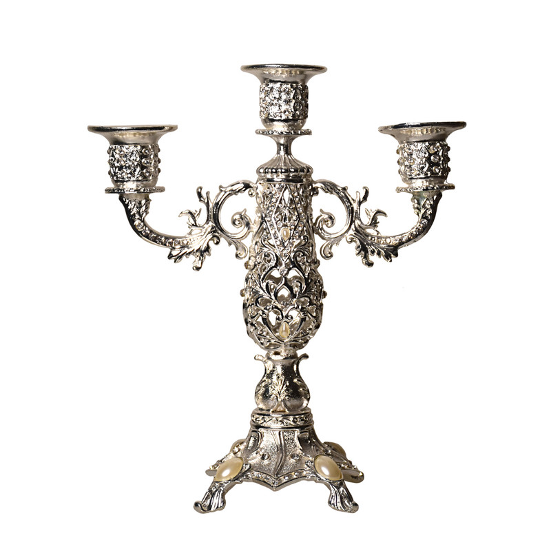 شمعدون سه شاخه مدل لوکس الیزه . آینه و شمعدان از گذشته تا کنون در دکوراسیون خانه های ایرانی جا داشته اند. شمعدان یکی از لوازم دکوری مهم در منزل محسوب میشود که میتوانید در نقاط مختلف خانه قرار گیرد . با قرار دادن شمع های گوناگون و نورپردازی ملایم نمایی جذاب به وجود آورید. این محصول وارداتی میباشد بوده و با طراحی زیبا در دسترس خریداران قرار گرفته