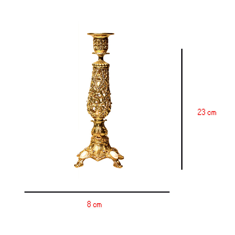 شمعدون تک شاخه مدل لوکس الیزه . آینه و شمعدان از گذشته تا کنون در دکوراسیون خانه های ایرانی جا داشته اند. شمعدان یکی از لوازم دکوری مهم در منزل محسوب می‌شود که می‌توانید در نقاط مختلف خانه قرار گیرد . با قرار دادن شمع های گوناگون و نورپردازی ملایم نمایی جذاب به وجود آورید. این محصول وارداتی میباشد بوده و با طراحی زیبا در دسترس خریداران قرار گرفته