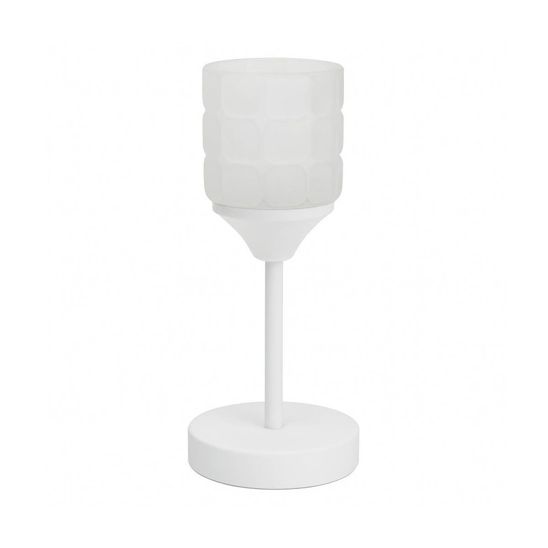 جاشمعی دکوری مدرن با پایه فلزی سفید و کاپ شیشه ای مات طرح مکعبی، انتخابی ایده آل برای دکوراسیون داخلی با سبک های مینیمال، مدرن یا اسکاندیناوی است.