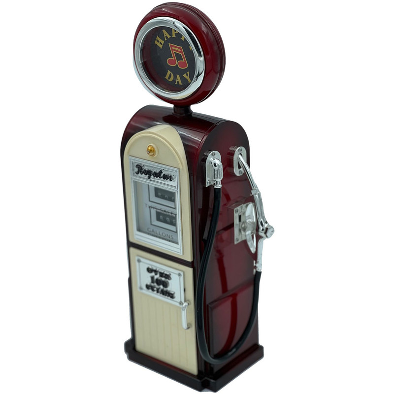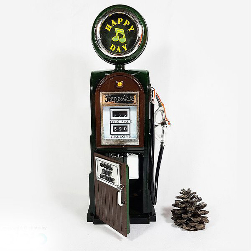 پمپ بنزین موزیکال یک هدیه متفاوت ، این محصول یک پمپ بنزین بصورت جعبه موزیکال با قابلیت های متنوع ! ابعاد مناسبی دارد، کوکی است. رنگ بدنه قهوه ای است و طراحی دقیقا مشابه پمپ بنزین دارد. از پشت محصول کوک می شود و هنگام که موزیک می زند شماره های شروع به چرخیدن می کند. در قسمت جلوی این محصول دری است که باز می شود و میتوانید داخل ان جواهرات قرار دهید در قسمت بالایی کار هم قاب عکس نصب می شود.