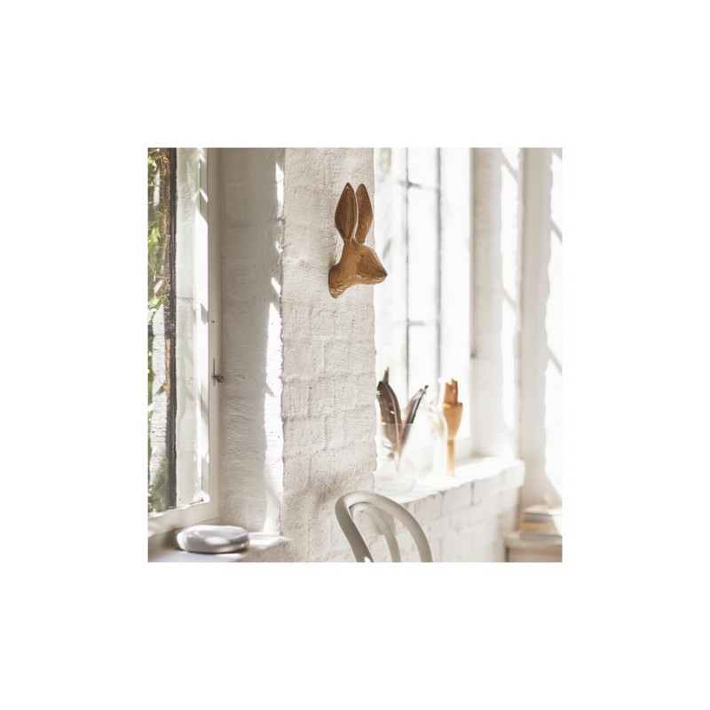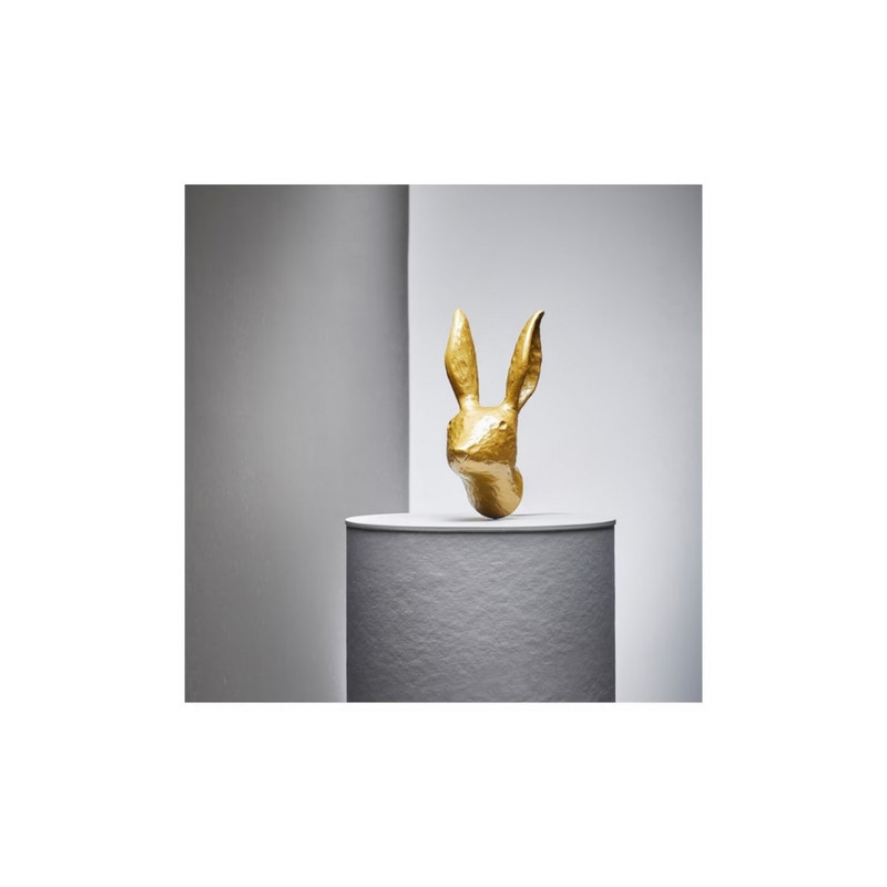 مجسمه دیواری ایکیا طرح خرگوش مدل HÄGGMISPEL، طراحی شده توسط Hanna Grann Dalrot، یک تندیس طلایی شکل است که حس یک مجسمه با خاک رس شفاف را به شما منتقل می کند .