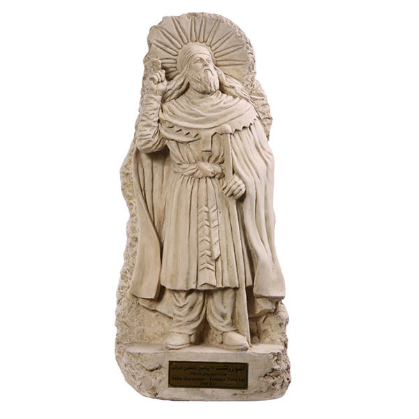 زرتشت پیامبر ایران باستان بود که مزدیسنا را بنیان گذاشت. وی همچنین سراینده گات‌ها، کهن‌ترین بخش اوستا می‌باشد. تعلیمات زرتشت بعدها با باورهای بومی ایرانیان ترکیب شد و مزدیسنای کنونی که نزدیک به پنج قرن دین رسمی ایران نیز بوده‌است، را پدید آورد. نام زرتشت در فهرست یکصد نفره انسان‌های تاثیرگذار تاریخ که توسط مایکل هارت تنظیم شده‌است، قرار دارد. ارتفاع این تندیس 43 سانتی‌متر، وزن آن بیش از دو و نیم کیلوگرم و جنس آن از فایبرگلاس است. این تندیس در کارگاه «تندیس و پیکره‌سازی شهریار» ساخته شده است. سازنده در این تندیس زرتشت را در حالتی که شعاع‌هایی از نور کنار سرش وجود دارد، نشان می‌دهد. در یک دست او عصایی وجود دارد و دست دیگر را به حالت موعظه کردن بالا برده است. مجسمه‌ها می‌توانند از هر جنسی باشند، می‌توانند در هر اندازه و شکلی باشند، پیچیده یا ساده باشند. اما به طور قطع هر کدام پیامی برایمان دارند. می‎توانند قهرمان‌های اساطیری باشند که در داستان‌ها اسمشان را شنیده‌ایم، یا می‌توانند شکل‌های ساده هندسی باشند. می‌توانند پیکره شاعر محبوبی بر سر میدان شلوغ شهر باشند، یا حتی پرنده‌ سفالی روی طاقچه. مجسمه‌ها مثل سفر می‌مانند. سفری از زندگی روزمره به سوی احساس و اندیشه، به سوی زیبایی و از همه مهم‌تر به سوی گفتگوی تمدن‌ها، فرهنگ‌ها و اندیشه‌های مختلف و متفاوت با یکدیگر. مجسمه‌ها می‌توانند بیانگر یک اندیشه، فرهنگ یا تمدن باشد. فرهنگ و اندیشه‌ای که گاهی اوقات از قرن‌های گذشته با انسان سخن می‌گوید.