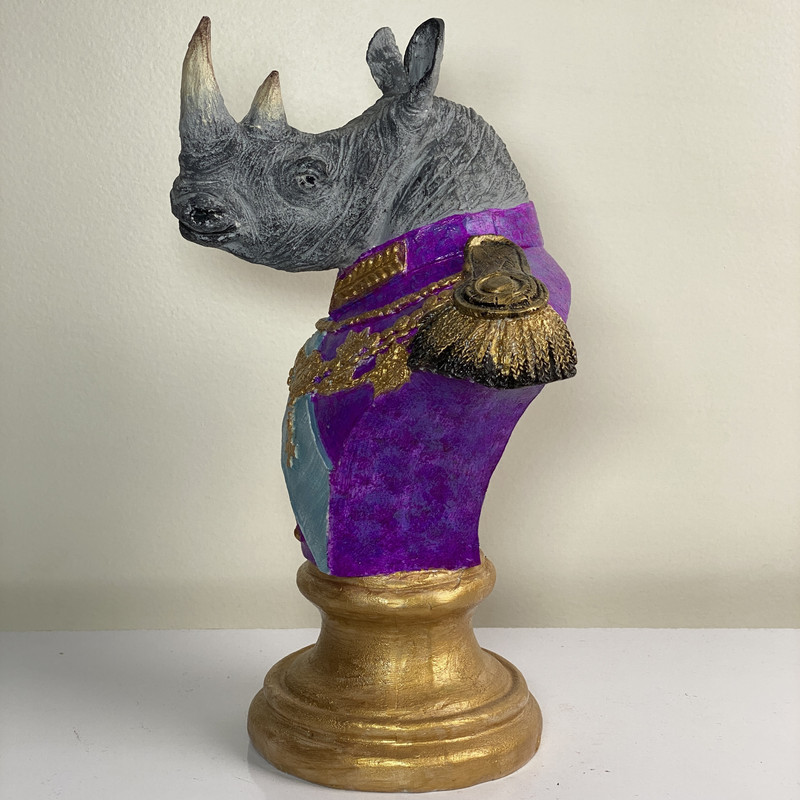 مجسمه دکوری نیمتنه کرگدن با لباس اشرافی، ترکیبی از هنرو ظرافت است. ساختهشده از پلیاستر با کیفیت، با رنگآمیزی دستی و جزئیات چشمگیر مانند مدالها و اپل طلایی. مناسب برای علاقهمندان به دکورهای خاص و متفاوت. این مجسمه انتخابی ایدهآل برای فضاهای مدرن، کلاسیک و حتی هنری است.