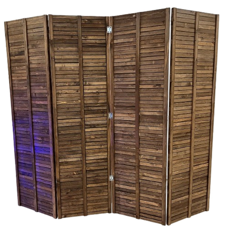 این پارتیشن، چهار لنگه ای میباشد که کار تماماچوبی و از استحکام فوق العاده ای برخوردار است، این محصول چوبی در همه مکانها اعم از مسکونی، تجاری، اداری، خانه باغ و… قابل استفاده میباشد، براحتی باز و بست میشود و نیازی به نصب ندارد، جایگزین فوق العاده راحت، شیک و ارزانی برای دیوارهای گچی و آجری میباشد