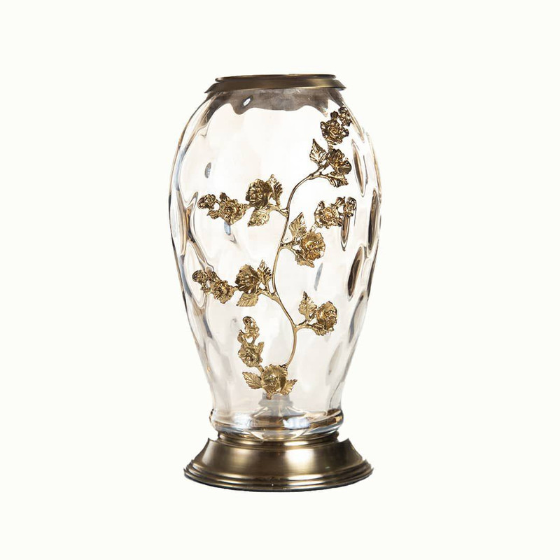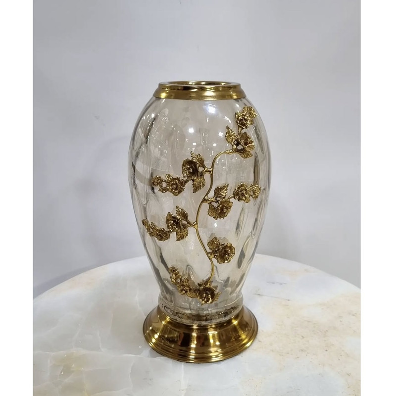 گلدانهای شیشهای که با گلهای زیبا و ظریف از جنس فلز تزیین شدهاند، میتوانند جلوهای خاص و مدرن به دکوراسیون داخلی بدهند. این نوع گلدانها معمولاً به دلیل ترکیب شفافیت شیشه و زیبایی فلز، بسیار جذاب و چشمنواز هستند.