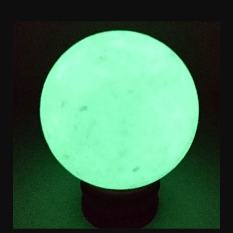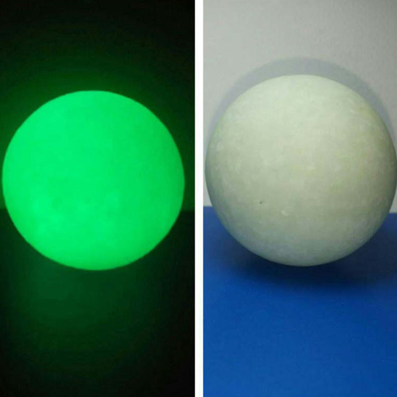سنگ شب تاب در روز یا زیر نور لامپ، نور را به خود جذب میکند و در شب (تاریکی) میدرخشد. طول این گوی های کروی شکل حدود 5 سانتی متر نیز می باشد. و دارای پایه پلاستیکی می باشد.