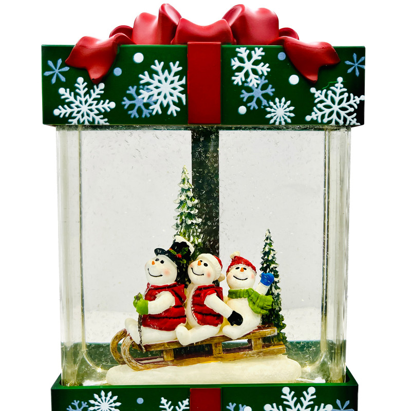 – گوی موزیکال پمپی، چراغدار و حاوی اکلیل های بیرنگ میباشد با قابلیت پمپاژ برف ، پخش موزیک های نوستالژیک کریسمس