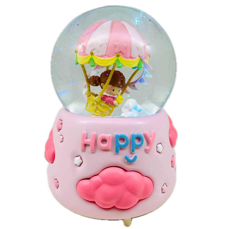 گوی موزیکال مدل پمپی Happy طرح دخترک بالن سوار کد PA1396